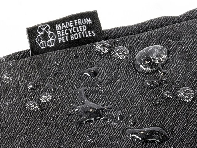 Легкий, элегантный, складывающийся рюкзак вместителен и удобен благодаря системе закрытия основного отделения roll-top, наличию трех наружных карманов спереди и по бокам из прочной эластичной сетки и внутреннему плотному карману для ноутбука до 16". Лямки с эластичными карманами для карт, телефона и других мелочей фиксируются на груди пряжкой, которую можно отрегулировать по высоте под ваш рост. Эластичные фиксирующие шнурки имеют светоотражающее нанесение, что обеспечивает дополнительную защиту в темное время суток. Дышащая сетка на спинке обеспечивает удобство и комфорт. На нагрудной пряжке предусмотрен свисток для экстренного случая. Водостойкая ткань верха изготовлена из переработанного пластика, пропитана специальным составом против загрязнения. В комплекте металлический шильд для нанесения вашего логотипа.