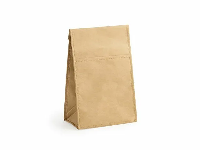 Сумка-холодильник из ламинированной бумаги с изотермической алюминиевой подкладкой. Храните еду или напитки при соответствующей температуре и носите их с собой куда угодно. Клапан и внешний карман на липучке.