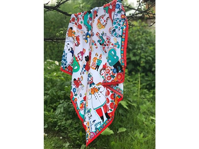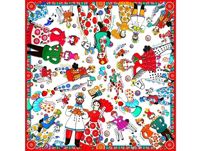 Нарядная и жизнерадостная, она ценит компанию, радость и задор. Именно такое настроение несёт в себе дизайн платка с изображением милых и таких родных сердцу образов. Забудьте про одиночество, уныние и хандру: в таком платке захочется улыбаться и парить в воздухе не только Вам, но и окружающим!