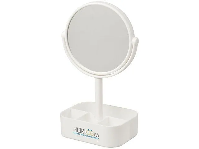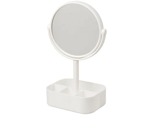 Косметическое зеркало Laverne. Двустороннее вращающееся зеркало с подставкой-органайзером. В повернутом положении зеркало обеспечивает 2-кратное увеличение отражения. Ударопрочный полистирол, стекло. 0,23.