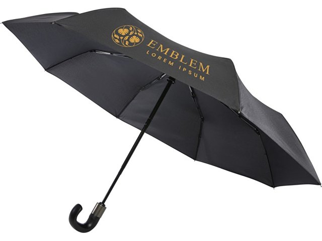 Автоматически открывающийся и закрывающийся складной зонт с куполом из эпонж полиэстера. Прочный металлический стержень, высококачественная рама со спицами из стекловолокна обеспечивают максимальную гибкость в ветреную погоду. Поставляется с чехлом и может легко поместиться в сумку или рюкзак для удобного ношения. Изогнутая ручка с мягким покрытием Soft Touch с деталями из матовой нержавеющей стали и наконечниками с черным никелевым покрытием. Тканые ярлыки с фирменными деталями Luxe на куполе, чехле и застегивающемся ремешке. Большая зона для декорирования на каждой панели купола. . Полиэстер Эпонж.