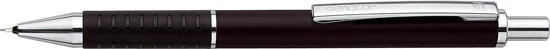 Письменные принадлежности в алюминиевом корпусе, чёрная мягкая зона грифа, высококачественное покрытие поверхности металлизированным лаком. Высококачественный полимерный стержень для карандаша, ширина штриха 0,5 мм, ластик под кнопкой.