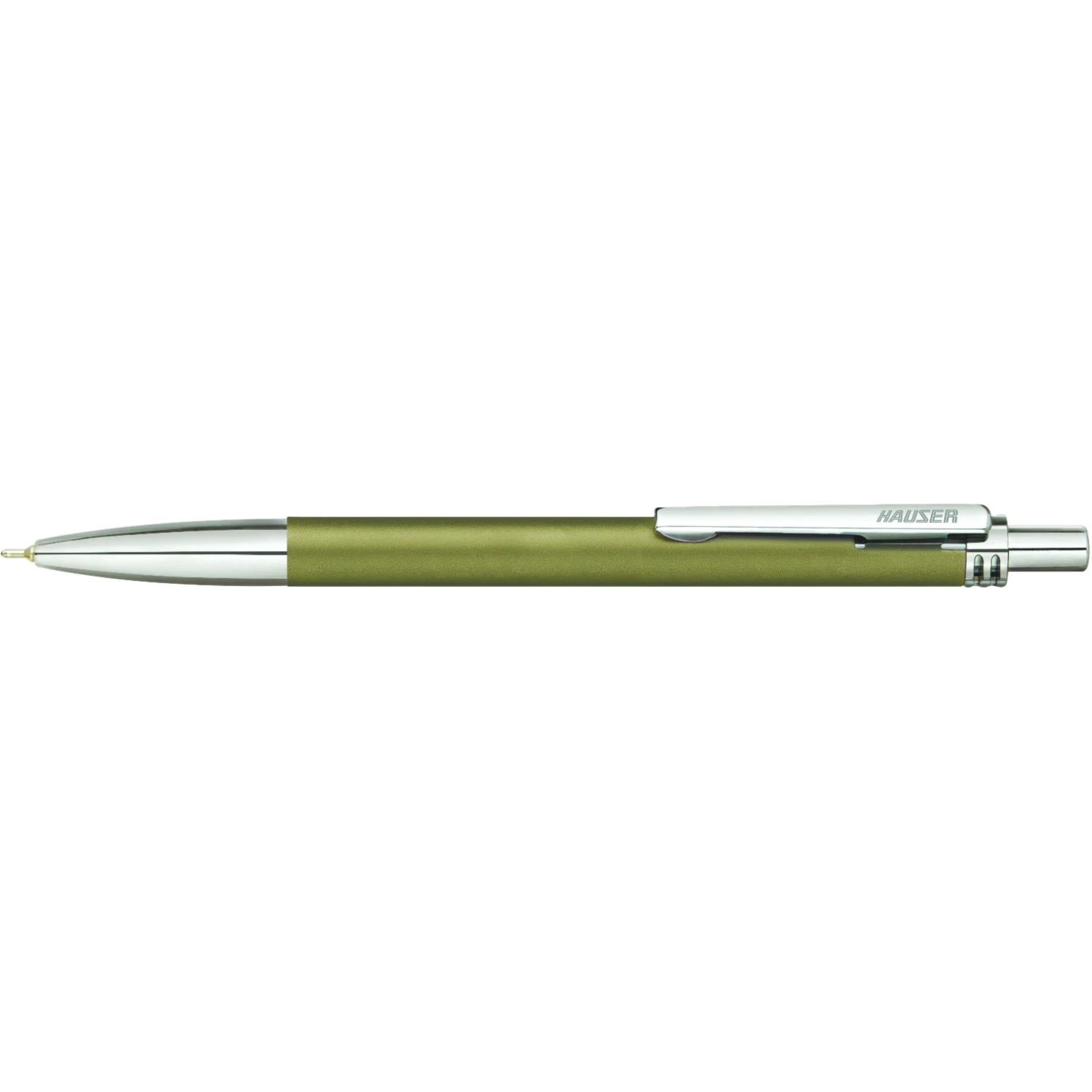 Шариковая авторучка, с нажимным механизмом . Корпус металлический с глянцевой хромированной отделкой .Стержень тонкий пластиковый с синей пастой . Толщина линии 0,5 мм