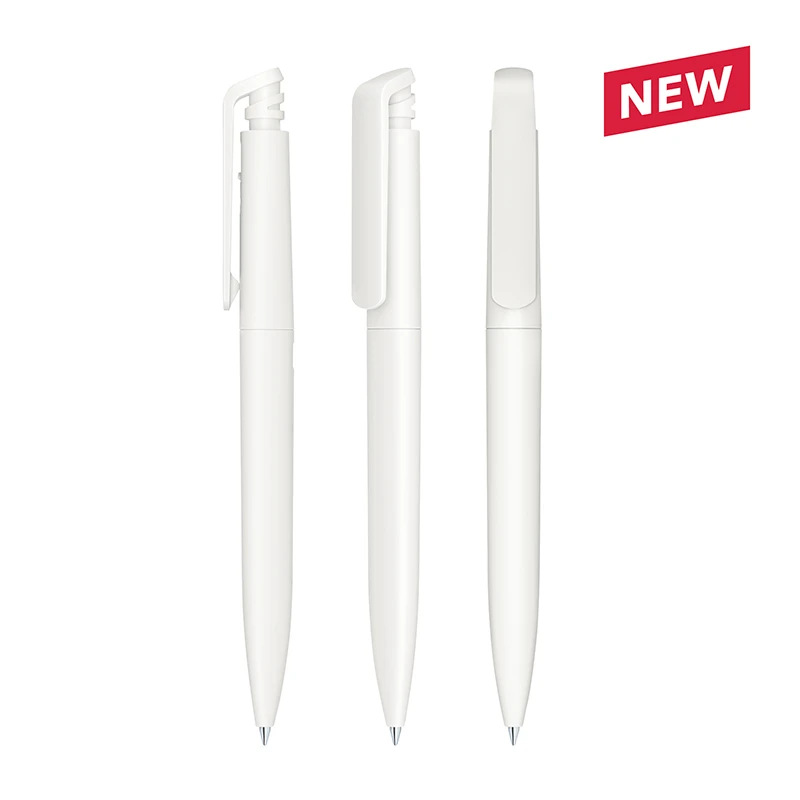 Шариковая ручка с нажимным механизмом. Эргономичный треугольный корпус из матового пластика. Стержень G2 c синими чернилами