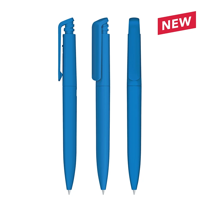Шариковая ручка с нажимным механизмом. Эргономичный треугольный корпус из матового пластика. Стержень G2 c синими чернилами