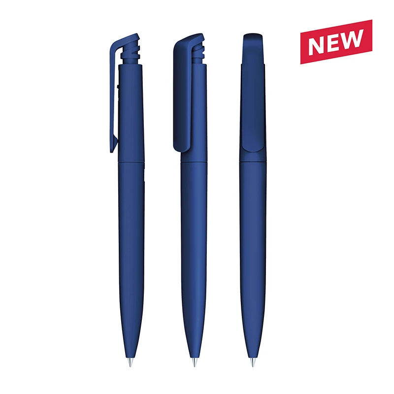 Шариковая ручка с нажимным механизмом. Эргономичный треугольный корпус из матового пластика. Стержень G2 c синими чернилами